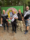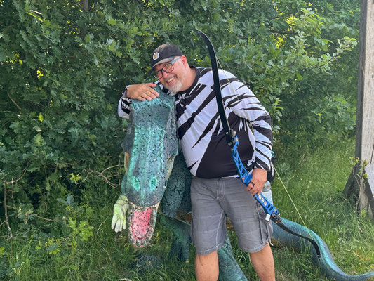 Im Mai geht's mit den Wettbewerben Schlag auf Schlag, oder besser gesagt "Schuss auf Schuss"! Die 3D-Variante des Bogenschießens hat in Achim bekanntermaßen einen hohen Stellenwert! So war es auch nicht verwunderlich, dass sich alleine 8 ABS'ler*innen zur Kreismeisterschaft angemeldet hatten! Die 6 anderen Starter*innen kamen aus Oyten, Posthausen und Verden/Dauelsen. Den Parcours hatte wieder einmal Arno Kütemeyer (Achim) derart geschickt platziert, dass die 3D-Hobbyjäger auf engstem Raum durchaus anspruchsvolle Ziele zu bewältigen hatten. Zwölf Tiere, die jeweils in zwei Runden beschossen wurden, galt es zu "erlegen". Laut Regelwerk wurden pro Ziel zwei Wertungspfeile geschossen und so kam es am Ende der Meisterschaft zu Ergebnissen und neuen Kreismeistern und Kreismeisterinnen. In gemütlicher Grillrunde wurde schließlich verlesen, wer dieses Mal die Nase vorn hatte. In der Klasse Instinktiv Master (männlich) gewann Ben Schmidt (ABS) mit großen Vorsprung den Titel und in der teilnehmerstärksten Klasse Blankbogen Master (männl.) konnte sich ein weiterer Achim, Raimond Ehrentraut) mit dem Tageshöchstergebnis klar durchsetzen. Der 3. Kreismeistertitel ging an Thomas Assmuß, allerdings ohne Konkurrenz aus dem Kreisverband. Fazit: 3D rocks!"