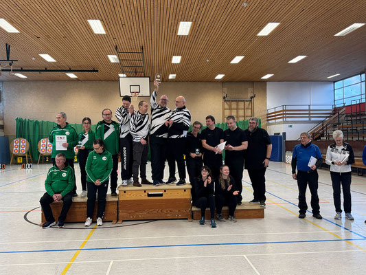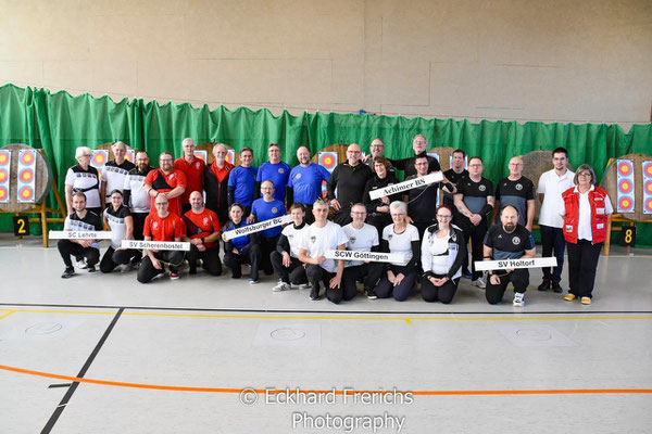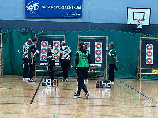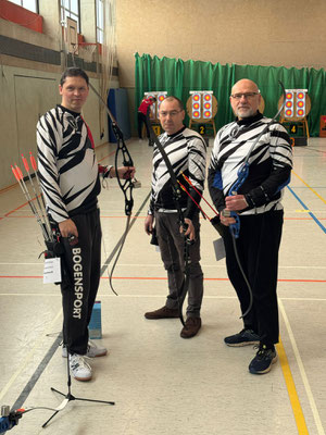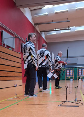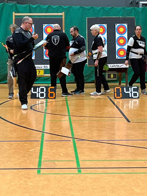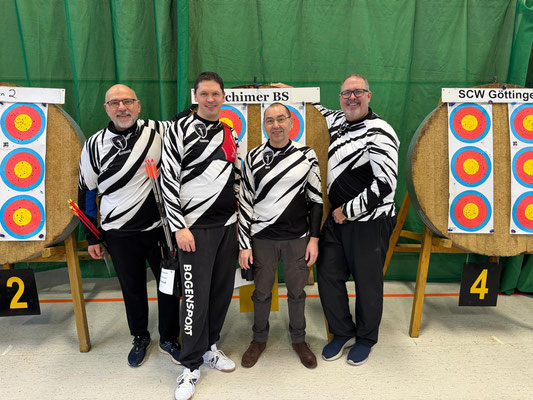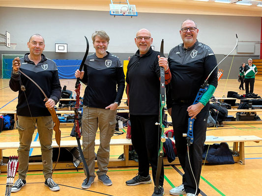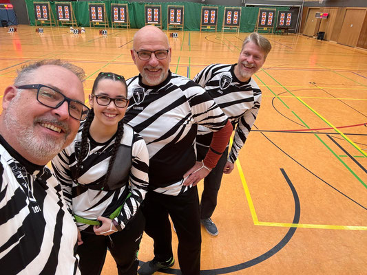 Verlief die erste Wettkampfrunde mit zwei Siegen, zwei Niederlagen und Platz 4 noch eher durchwachsen, gelang in der 2. Runde ein glatter Durchmarsch mit fünf Siegen. Eine tolle Teamleistung! Dabei sorgten die beiden erfahrenen Schützen Gerd Güldenast und Raimond Ehrentraut für Stabilität und Sicherheit bei so manchem engen "Fight"! Jens Piehl und Anna Nientkewitz konnten sich ebenfalls gut und erfolgreich in die das Team einbringen! Nach beiden Durchgängen konnten sich die "vier Bogentiere (Musketiere;-)" über das Erreichen des 2. Platzes freuen, nur einen (läppischen) Punkt hinter dem SV Unterstedt!