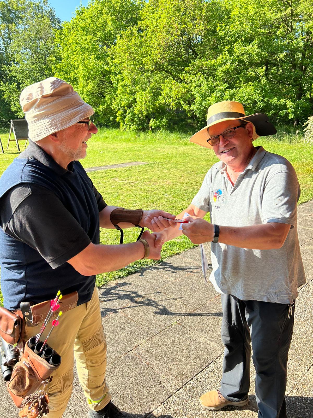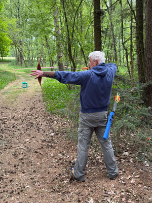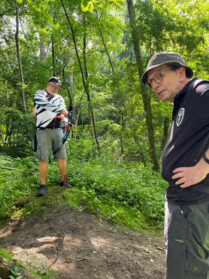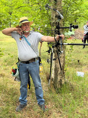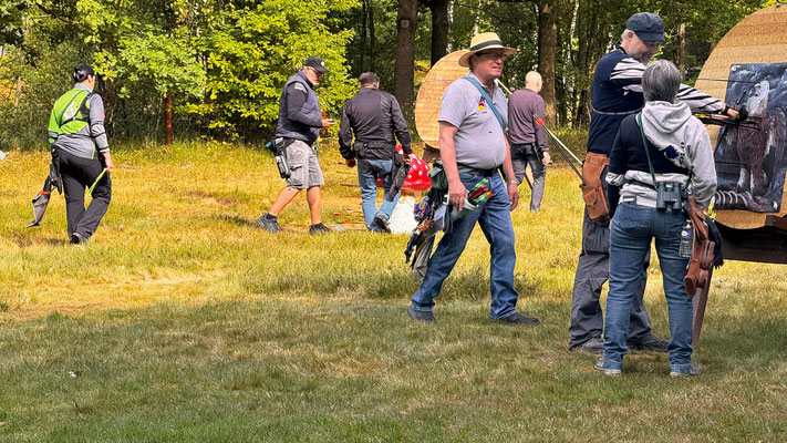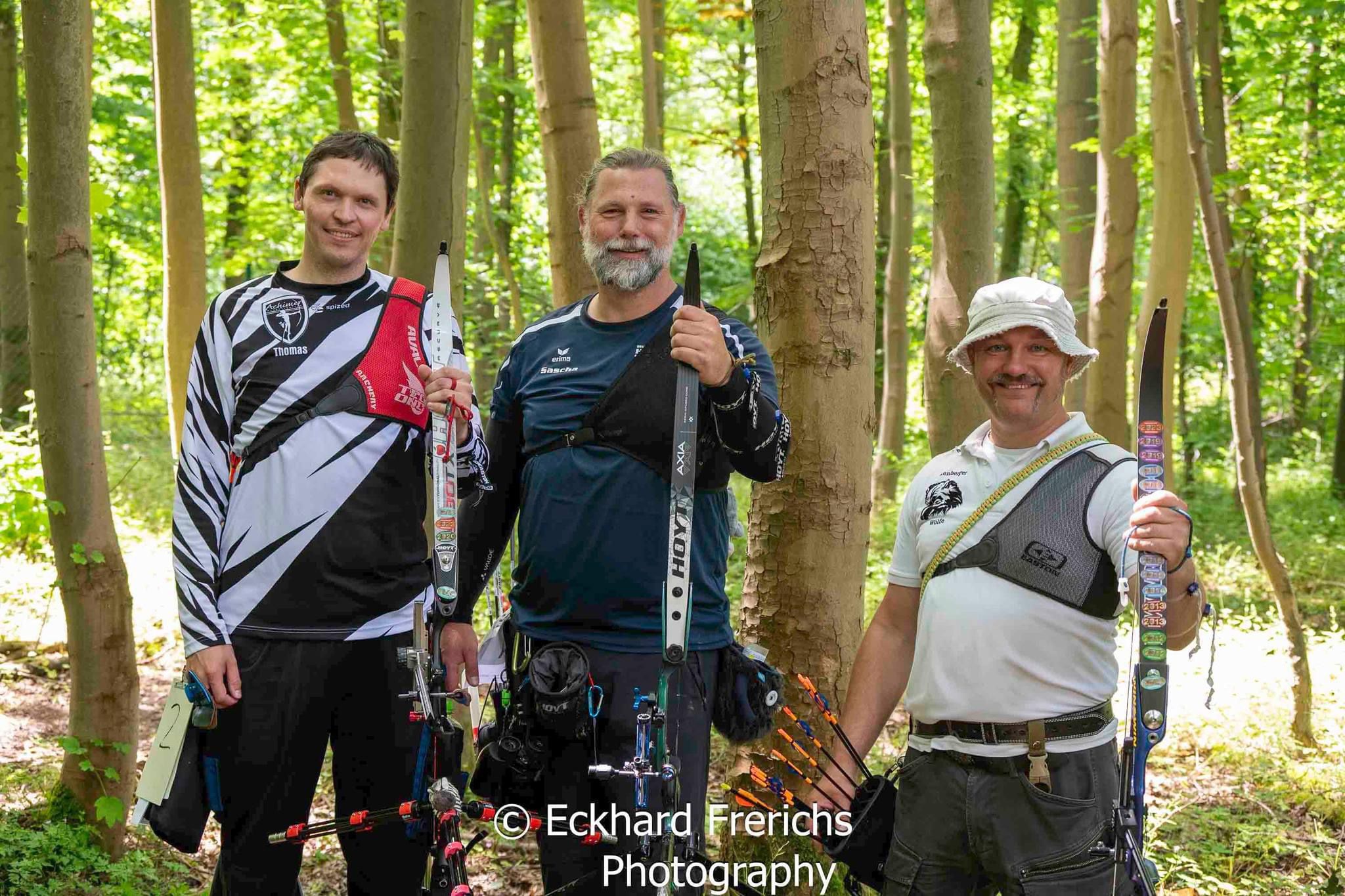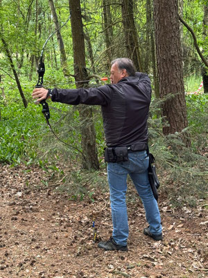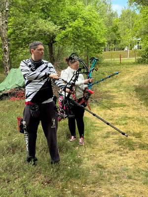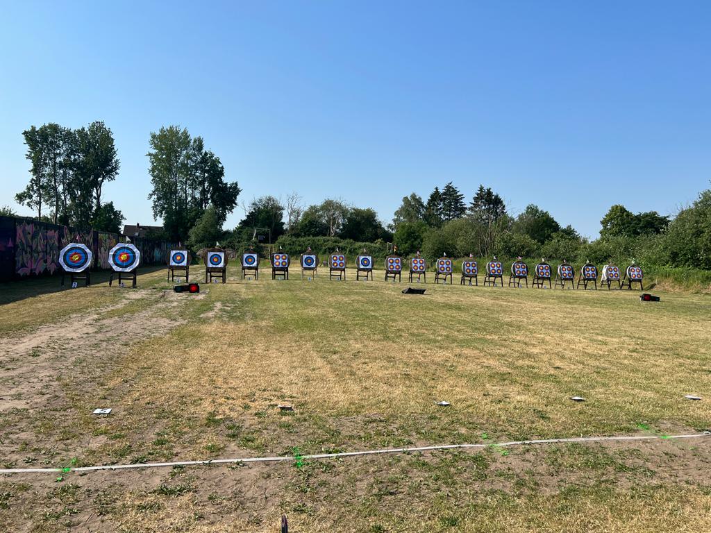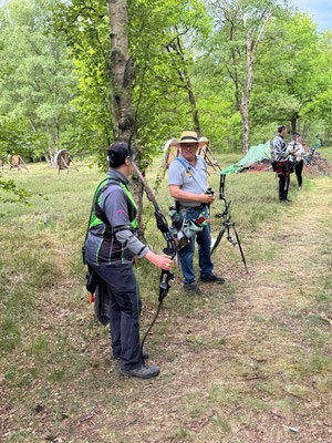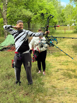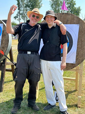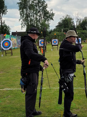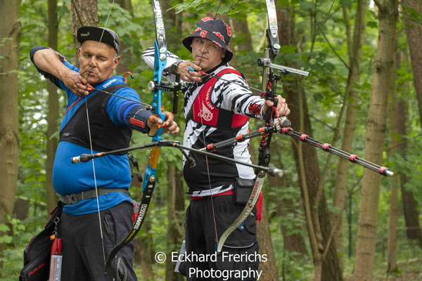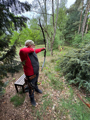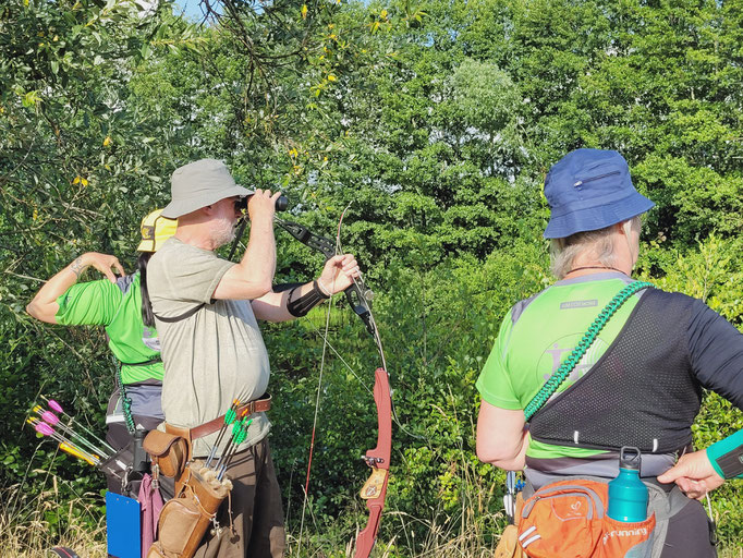 Zwei weitere Achimer Bogenschützen waren an diesem Sonntag in einem Wettbewerb unterwegs, der von einigen Bogenschützen*innen als Königsdisziplin des Bogenschießens bezeichnet wird! Die 24 Bogenscheiben verteilten sich in einem anspruchsvollen Parcours, der durchaus einer Deutschen Meisterschaft würdig gewesen wäre. Wenig Schatten, viel Wärme bereiteten den Teilnehmer*innen Stunde um Stunde zunehmend mehr Schwierigkeiten und ließen hie und da die Konzentration bis zum Ende am späten Nachmittag dahinschmelzen! Gerd Güldenast und Raimond Ehrentraut starteten in der größten Teilnehmergruppe Blankbogen Master (21!) und hatten mit den genannten Schwierigkeiten zu kämpfen. Einige Ziele wurden von beiden mit Bravour und hoher Ringzahl gemeistert, andere manches Mal eher nicht. Es fehlte ein Stückweit die Konstanz, um in der Ergebnisliste weiter nach vorne zu stoßen! Schlussendlich waren sie am Ende des Tages zwar erschöpft, aber durchaus zufrieden! Gerd landete mit 224 Ringen auf Platz 12 und Raimond auf Platz 9 mit 237 Ringen. Umfangreiche Bildergalerie des NSSV