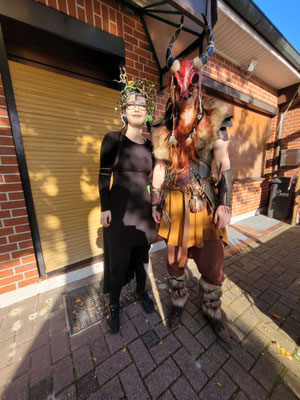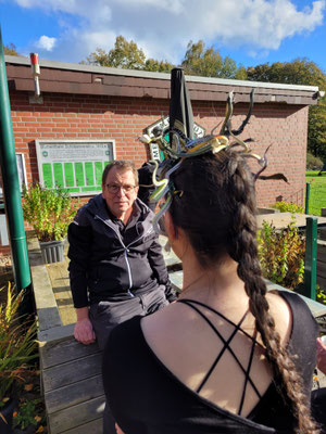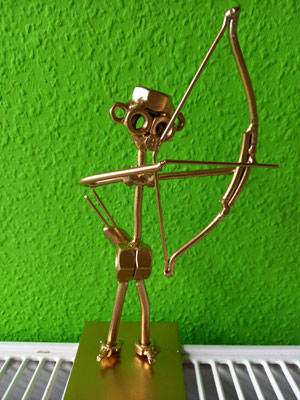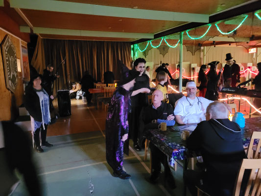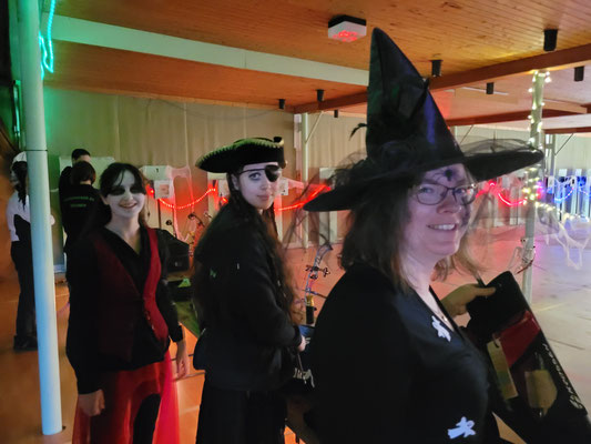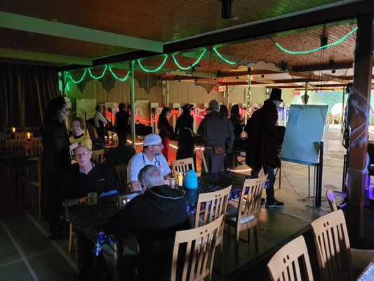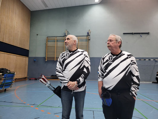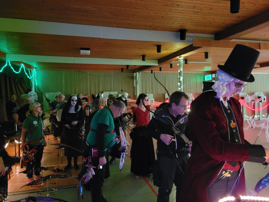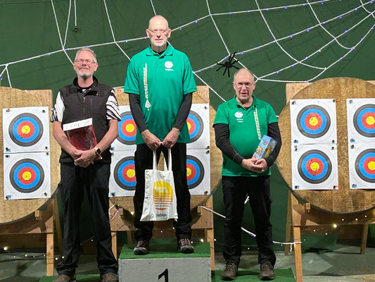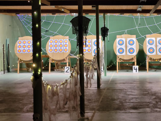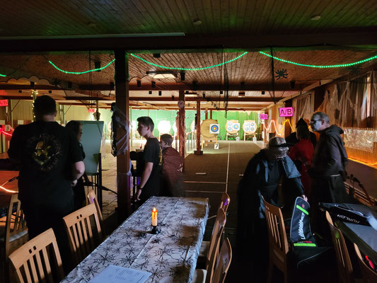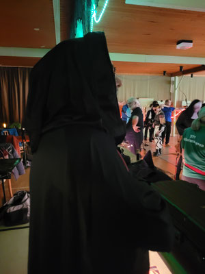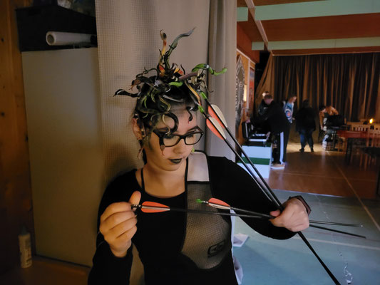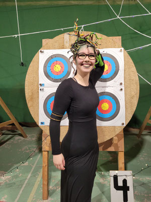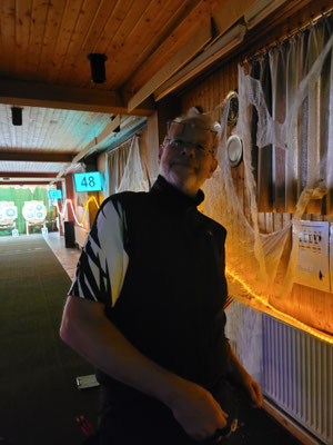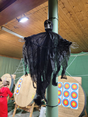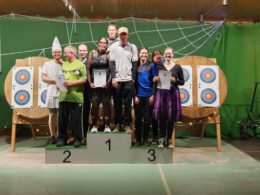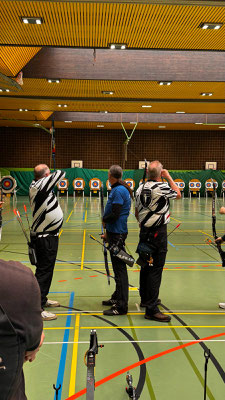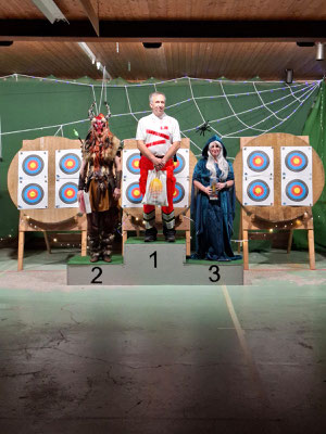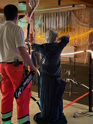Rettungsengel rettet Achimer Bogenschützen-Ehre! Zwei Gruselturniere an einem Tag, das kann einen schon das Fürchten lehren! So sah es jedenfalls zunächst für den Großteil der am Morgen angereisten Achimer Bogenschützen aus. Kaum jemand erreichte auch nur annähernd sein Leistungsvermögen. Aber mal abgesehen vom persönlichen Ehrgeiz, waren alle Teilnehmer*innen schwer begeistert von einem perfekt Halloween-mäßig organisierten und gestalteten Bogenturnier zu Beginn der neuen Hallensaison! So standen beileibe nicht nur Ergebnisse und Platzierungen im Vordergrund, sondern auch Masken und Verkleidungen. Eine Jury prämierte die auffälligsten und aufwändigsten Horrorgestalten passender Weise mit einem Totenkopf. Hier gingen die Achimer Teilnehmer*innen (dieses Mal) leider leer aus obwohl Anna Nientkewitz mit ihrer Interpretation der Medusa einen hervorragenden Eindruck hinterließ! Auf das Siegertreppchen schafften es erst beim 2. Turnier am Nachmittag "Rettungsengel" Stefan Obenlüneschloß mit starken 454 Ringen bei den Schützen Blankbogen auf den ersten Platz, Andree Wilken auf den 2. Platz in der Klasse Blankbogen Master, Anne Giebler (1. Turnier) als "Todesbotin" auf Platz 3 bei den Blankbogenschützen*innen und Thomas Asmuß ebenfalls mit Platz 3 in der Compoundklasse! Thomas gewann zudem in Kooperation mit einem Compounder und einer Compounderin vom SV Posthausen bei beiden Turnieren jeweils den Mannschaftspreis! Weitere Achimer Teilnehmer beim Bogen-Grusical: Ulf Haferkamp (1. Turnier!) und Raimond Ehrentraut (Van Helsing) Fazit: Ein tolles Turnier! ABS wird wiederkommen!