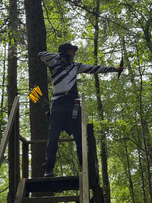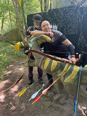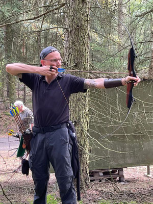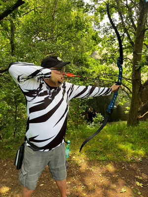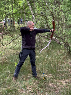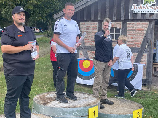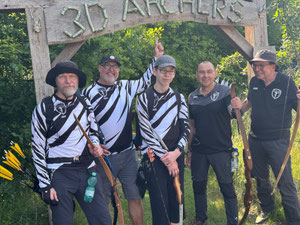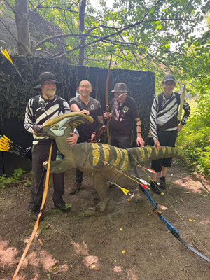 Das absolute TOP-Event im Norden findet seit geraumer Zeit auf dem wunderbar angelegten und mit zahlreichen 3D-Tieren ausgestatteten ehemaligen Fliegerhorst der Bundeswehr in Wiefelstede statt. Auch dieses Jahr war eine absolut schlagkräftige und konkurrenzfähige Achimer Delegation am Start! Zusammengefasst lässt sich sagen, dass 1. alle ABS'ler viel Spaß hatten und teilweise sogar über sich hinaus gewachsen sind. So z.B. Ulf Haferkamp, der mit seinem erst kürzlich erworbenen Langbogen ein um das andere Mal instinktiv nicht unbedingt erwartbare Treffer / Kills erzielte! Platz 14 von 25 zumeist erfahrenen Startern sprang dabei heraus! Knapp dahinter Jens Piehl mit Platz 15, aber durchaus zufrieden, da in einem gewissen Trainingsrückstand befindlich. Zu erwähnen wäre auch, dass Noah Kerkhoff, noch zarte 16 Jahre jung, laut Festlegung des Veranstaltes, bei den Herren Blankbogen starten musste. Dennoch verkaufte sich Noah bei den Erwachsenen sehr respektabel mit einem ordentlichem Ergebnis und Platz 28 in dieser großen und bärenstarken Klasse! Auch Ben Schmidt musste bei der Klasseneinteilung leider gewissermaßen "eine Kröte schlucken"! Statt bei den Jadrecurveschützen (instinktiv) gewertet zu werden wurde er aufgrund einer vorhandenen Pfeilauflage, die bei Meisterschaften nicht beanstandet wird, in die Blankbogenklasse geschoben, obwohl er instinktiv, also ohne strukturiertes Zielsystem, schießt und auch ziemlich gut trifft. In der Jagdrecurveklasse wäre somit (eigentlich) ein vorderer Platz (7. von 27) herausgesprungen, statt Platz 16 bei den Blankbognern! Tagesbester der Achimer war allerdings Gerd Güldenast der mit einem super Ergebnis, deutlich über 600 Punkten, 5. wurde und damit schon an der "Treppchen-Luft" schnuppern durfte!