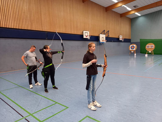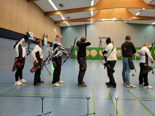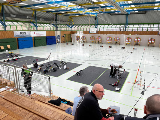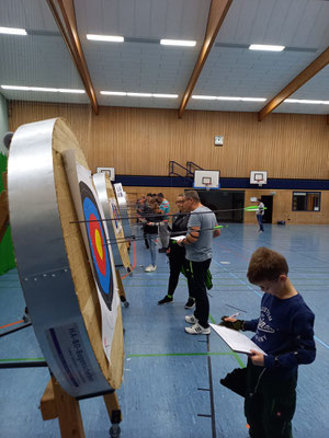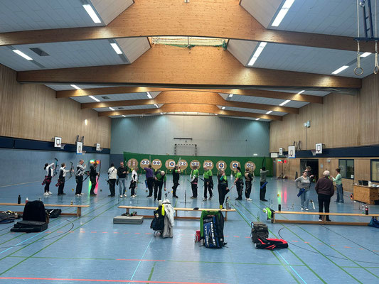 Eine Woche später, gleiche Stelle - gleiche Welle! Drei Vereine trafen sich in der Achimer Realschulhalle, um die Kreismeisterschaft zu absolvieren, so wie schon in unzähligen Jahren zuvor. Der SV Posthausen, die SSG Mühlentor-Oyten und die Achimer Bogenschützen. 22 Schützinnen und Schützen, darunter dieses Mal verhältnismäßig viele Anfänger, schossen in den jeweiligen Bogen- und Altersklassen die Kreismeister*innen aus. Einige Achimer Schützen*innen hatten für die Qualifikation zur Landesmeisterschaft "vorgeschossen" und konnten somit wiederum tatkräftig für die Durchführung der Kreismeisterschaft sorgen.