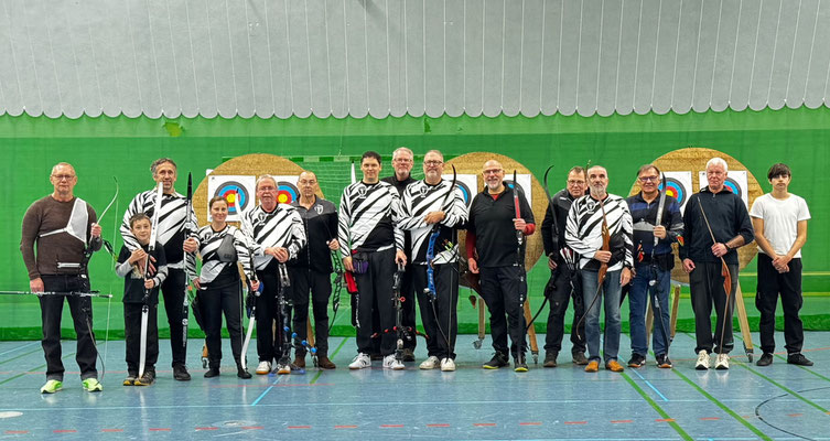 Was für ein Start ins neue Jahr! Der Ligapokal 2025 geht erstmalig nach Achim und der Aufstieg in die Verbandsoberliga ist auch geschafft! Krankheitsbedingt fehlten dieses Mal leider Anna Niemkewitz und Jens Piehl, die am ersten Wettkampftag in Göttingen noch für tatkräftige Unterstützung gesorgt hatten. Um eine schlagkräftige Mannschaft nach Clauen schicken zu können, sprangen Ben Schmidt und Thomas Asmuß ein. Dabei sei erwähnt, dass Thomas eigentlich ein ausgewiesener Visierschütze ist und mit dem Blankbogen bis dato noch keinen Wettkampf bestritten hatte. Thomas kam allerdings erstaunlich gut zurecht und bestritt fast alle Matches, gemeinsam mit Gerd Güldenast, dem Team-Captain und Raimond Ehrentraut. Ben sprang zur Entlastung zwar ein, musste dann aber aufgrund technischer Probleme passen. So boten die beiden letzten Wettkampfdurchgänge Spannung pur! Insbesondere das Finale am Nachmittag wurde zum Bogenkrimi!. Hatten die Achimer BS am Vormittag überraschend jede andere Mannschaft schlagen können, wurde es zum Schluss noch mal eng! Glück und Ehrgeiz auf Seiten der gegnerischen Mannschaften trafen auf zunehmende Anspannung und Nervosität bei den Achimern. Nach hartem Kampf und teilweise sehr engen Matches, fuhren die Achimer Blankbogenschützen zunächst zwei Niederlagen und zwei Remis ein. Erst das letzte Duell konnten sie wieder für sich entscheiden! Das Punktepolster vom Vormittag hat dann schlussendlich aber doch gereicht und die Hauptkonkurrenten vom BSC Clauen und dem SV Unterstedt auf Distanz (5 Punkte) gehalten! Fazit der Ligasaison: Allen beteiligten Schützen*innen hat es unheimlich viel Spaß gemacht, auch und gerade weil alle Mannschaften sehr fair und freundschaftlich miteinander umgegangen sind! Ergebnisliste bei den Fotos.