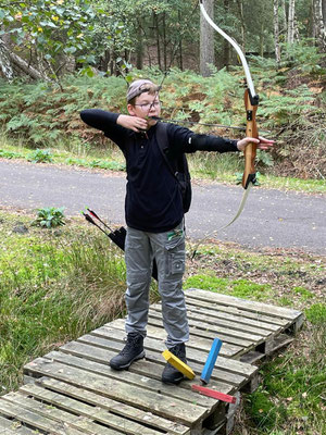 Mal abgesehen vom sonnigen Herbsttag durften sich die Bogenschützen*innen an dem herrlichen Parcours erfreuen und jedes Ziel, jeden Pfeil genießen! Kommentar Gerd: "Hat wirklich Bock gemacht!"