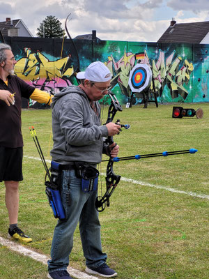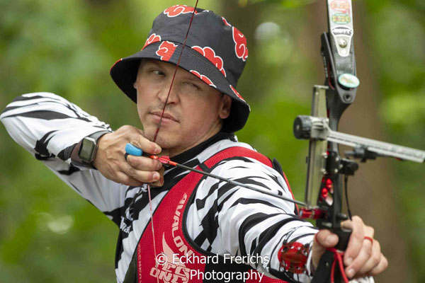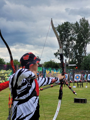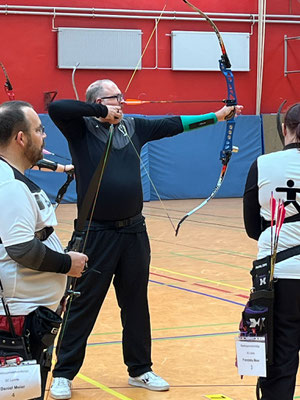 Recurveschütze mit Visier und Stabilisation antrat, hatte allerdings eine besondere Herausforderung: Er musste auf den Distanzen von 60m, 50m und 40m seine Pfeile ins Ziel