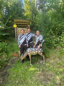 Vier Achimer auf "Zebra-Streife" im Wald und Holtorf zum Zweiten! Vierzehn Tage nach der LM Feld trafen sich wieder ambitionierte Outdoor-Bogenschützen zur 3D-Meisterschaft erneut in Holtorf. Gleiche Stelle, gleiche Welle? Weit gefehlt! Die Holtorfer hatten einen wunderbaren, abwechslungsreichen Tier-Parcours aufgestellt, der nichts mehr mit dem vorherigen Feldbogenparcours zu tun hatte.