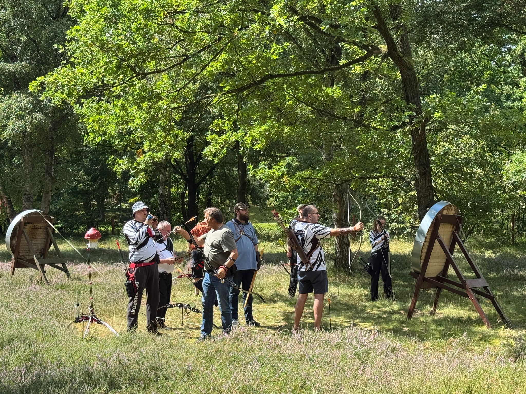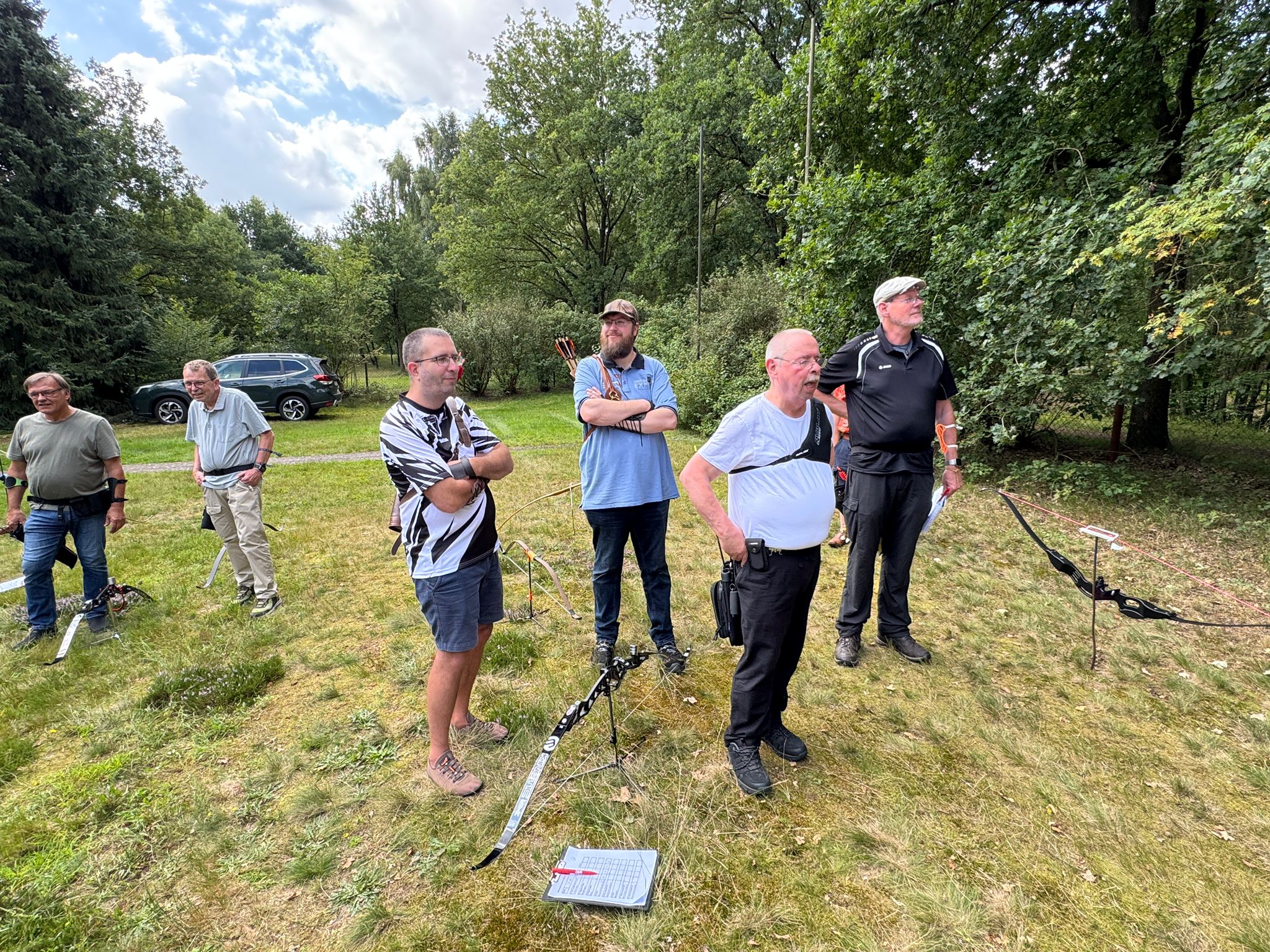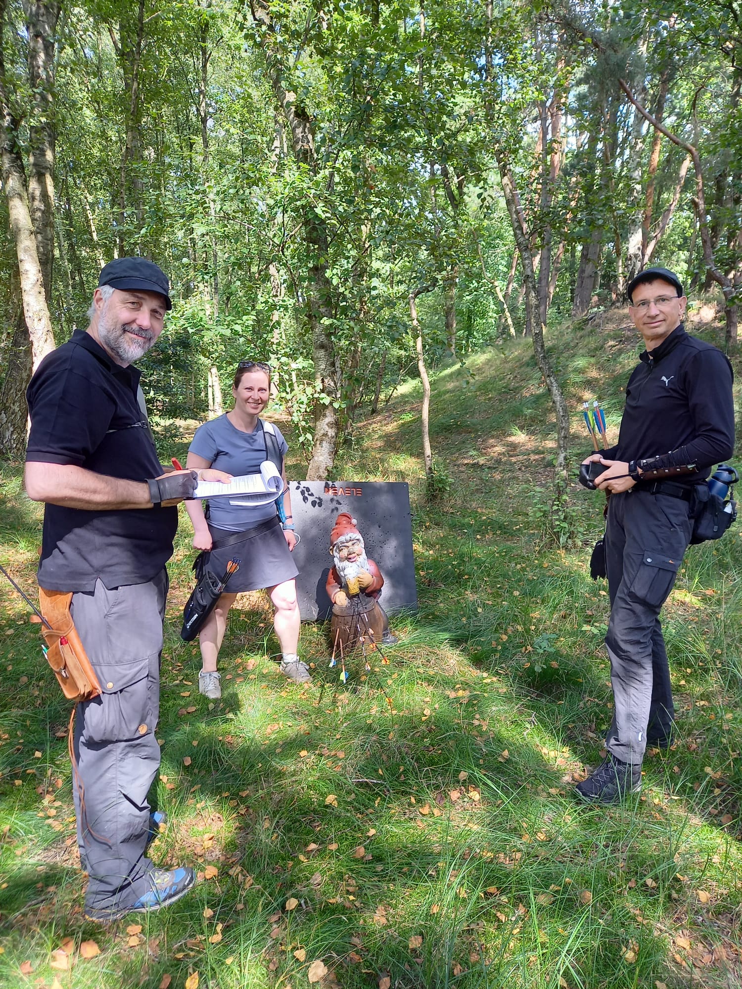 "Danke für den schönen Tag. Es war wieder alles wie es sein muss!" (Ingo) Viele ähnliche Glücks-Kommentare folgten. Was für ein entspannter Tag für 20 Achimer große und kleine, alte und junge Bogenschützen*innen, sonniges Wetter inklusive! Unser 1. Vorsitzender, Arno Kütemeyer, hatte den Parcours mit 12 verschiedenen 3D-Zielen samt Absperrungen und Sicherheitsnetzen bereits am Vortag aufgebaut. Planung und Organisation des Turniers lagen komplett bei ihm, was schon ziemlich bemerkenswert ist, aber auch deutlich macht, dass es gewissermaßen sein "Baby" ist. Selbstverständlich waren dieTeilnehmer*innen nicht nur beim Schießen und Genießen aktiv, sondern auch beim abschließenden Aufräumen! In drei Gruppen zogen die ABS'ler über den Platz und das angrenzende Wäldchen. Der Parcours war aber gar nicht mal so leicht gestellt. Ein paar Ziele standen schon recht weit entfernt und stellten die Schützen*innen vor die eine oder andere Herausforderung. Eine Wackelscheibe, auf die man sich beim Schießen stellen musste, sorgte sowohl für Heiterkeit, als auch für einige "Fahrkarten", trotz Nahdistanz. Am Ende des Tages gab es natürlich auch vereinsinterne Sieger: Mika und Noah bei den Kids und Gerd Güldenast bei den Erwachsenen. Fazit: Extrem gelungen - Fortsetzung unbedingt erwünscht! :-)
