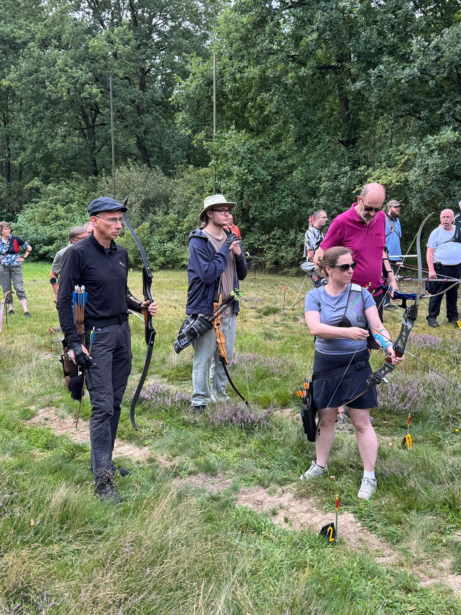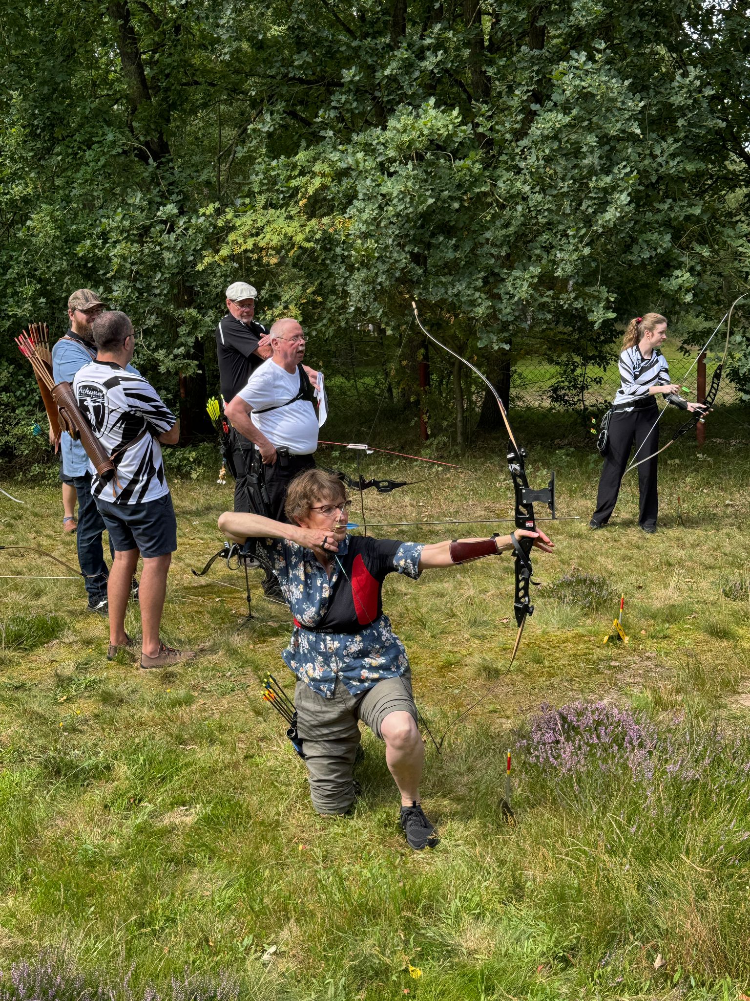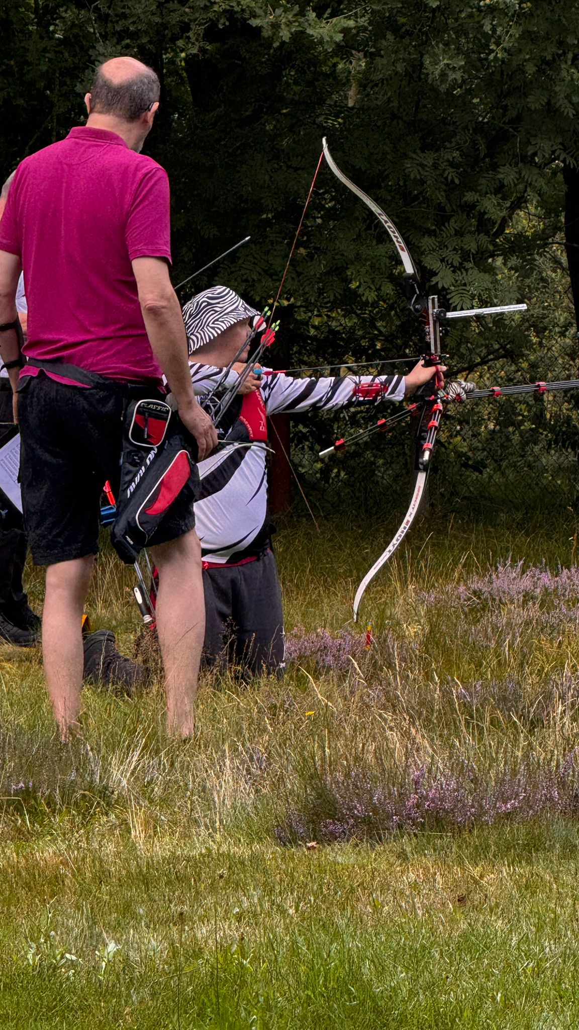 "Danke für den schönen Tag. Es war wieder alles wie es sein muss!" (Ingo) Viele ähnliche Glücks-Kommentare folgten. Was für ein entspannter Tag für 20 Achimer große und kleine, alte und junge Bogenschützen*innen, sonniges Wetter inklusive! Unser 1. Vorsitzender, Arno Kütemeyer, hatte den Parcours mit 12 verschiedenen 3D-Zielen samt Absperrungen und Sicherheitsnetzen bereits am Vortag aufgebaut. Planung und Organisation des Turniers lagen komplett bei ihm, was schon ziemlich bemerkenswert ist, aber auch deutlich macht, dass es gewissermaßen sein "Baby" ist. Selbstverständlich waren dieTeilnehmer*innen nicht nur beim Schießen und Genießen aktiv, sondern auch beim abschließenden Aufräumen! In drei Gruppen zogen die ABS'ler über den Platz und das angrenzende Wäldchen. Der Parcours war aber gar nicht mal so leicht gestellt. Ein paar Ziele standen schon recht weit entfernt und stellten die Schützen*innen vor die eine oder andere Herausforderung. Eine Wackelscheibe, auf die man sich beim Schießen stellen musste, sorgte sowohl für Heiterkeit, als auch für einige "Fahrkarten", trotz Nahdistanz. Am Ende des Tages gab es natürlich auch vereinsinterne Sieger: Mika und Noah bei den Kids und Gerd Güldenast bei den Erwachsenen. Fazit: Extrem gelungen - Fortsetzung unbedingt erwünscht! :-)