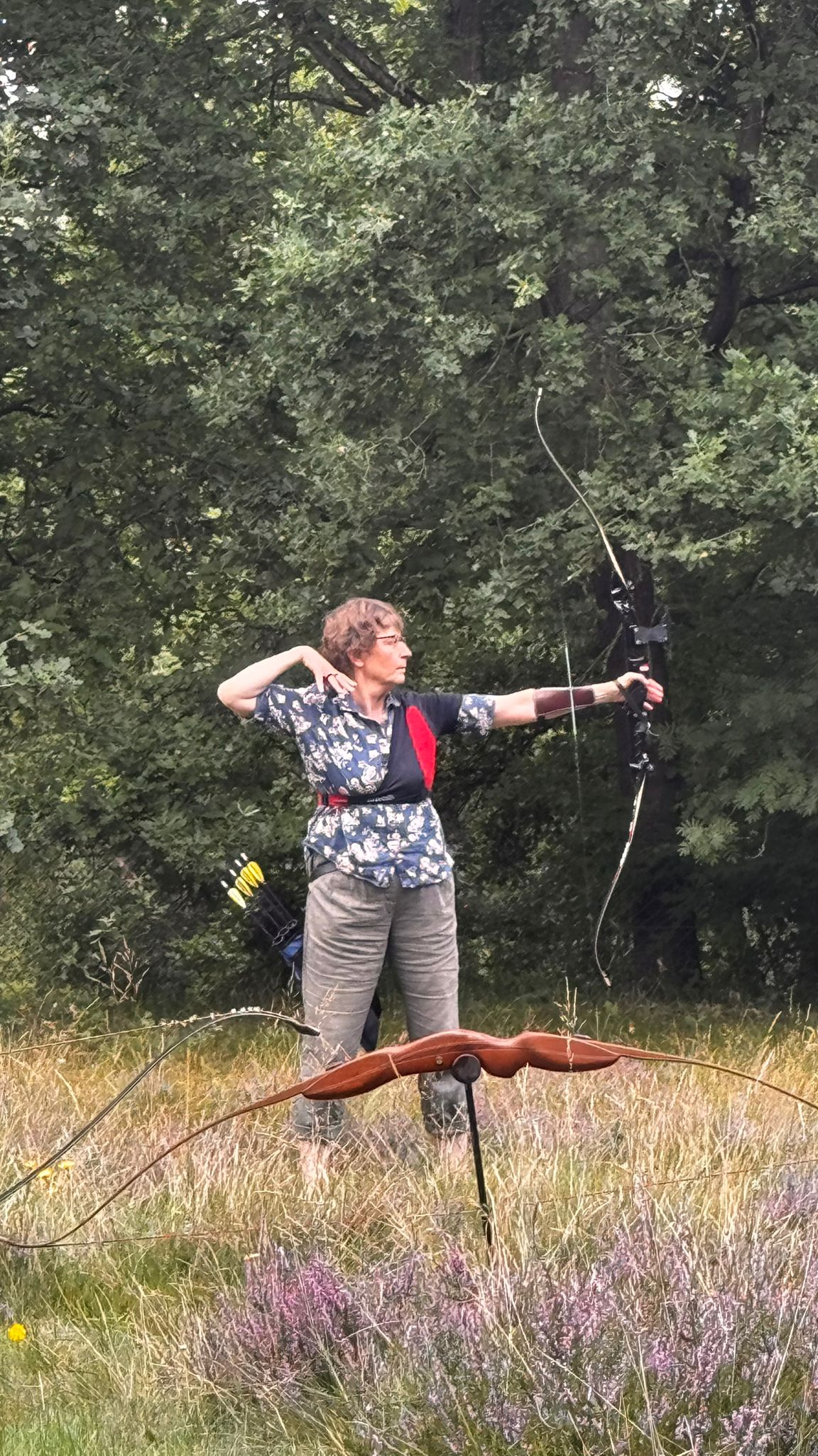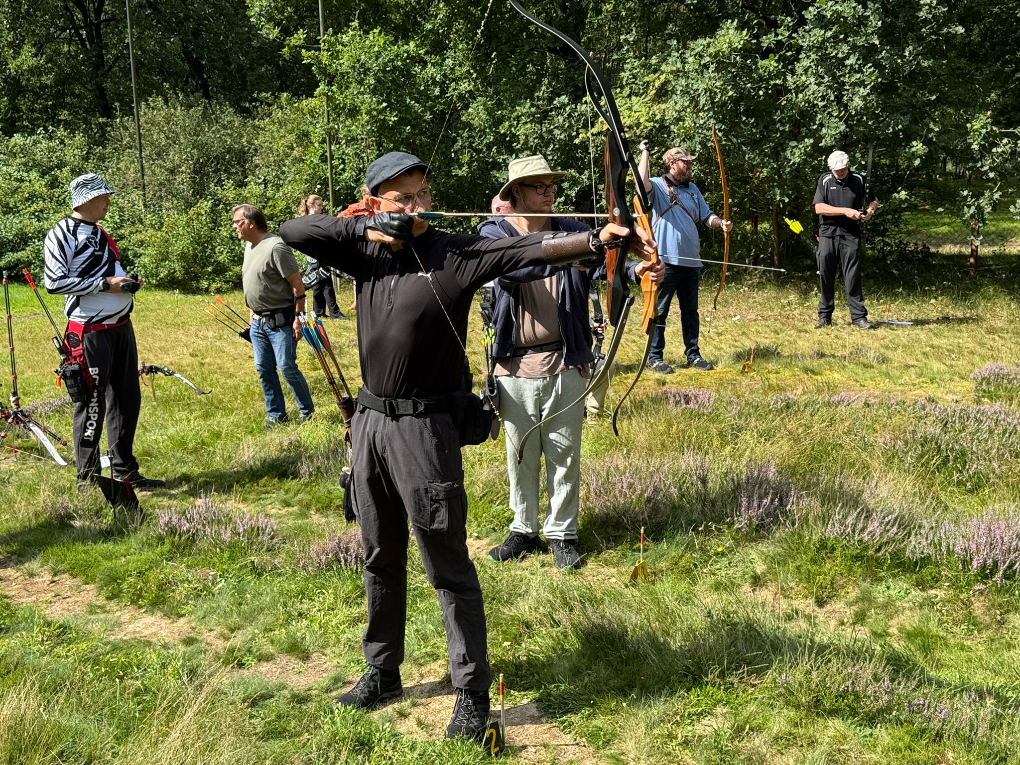 14.08. ABS-Bogenplatz: Einen Tag nach der gelungenen Ferienspass-Aktion trafen sich die ABS'ler auf dem Bogenplatz unter Schatten spendenden Bäumen zur Jahreshauptversammlung, die unser erster Vorsitzender Arno Kütemeyer, wie gewohnt souverän moderierte. Neben Berichten, Neuwahlen und Ehrungen wurden auch Ideen eingebracht und die Planung des neuen Sportjahrs besprochen. Nächster Tagesordnungspunkt: Sommerfest! Nach der Pflicht, die gar nicht so dröge war", folgte das Mittagessen, für das der große Grill angeschmissen wurde. Wurst und Steaks zu mitgebrachten Salaten stärkten die Vereinsmitglieder und sorgten für geselliges Miteinander! Nach dem leiblichen Wohl wurden flugs die Bögen zusammengebaut, um noch ein paar Pfeile zu schießen, ein paar Pfeile mehr! Arno und Armin Westpfahl (Sportwart) hatten einen kleinen aber feinen Bogenparcours mit spannenden Zielfiguren aufgestellt, der für alle "machbar" war, wobei die Kinder sich natürlich dichter heran stellen durften. Insgesamt drei Stunden dauerte das vereinsinterne, ziemlich Schweiß treibende Turnier, bei dem es im Grunde nur "Gewinner" gab! :-) Das Tageshöchstergebnis bei den Visierschützen erzielte Sarah Kirchner (Schülerin), bei den Schützen*innen ohne Visier (Blank, Traditionell) hatte das ehemalige Vorstandsmitglied Raimond Ehrentraut einen guten Lauf und erreichte den ersten Platz.